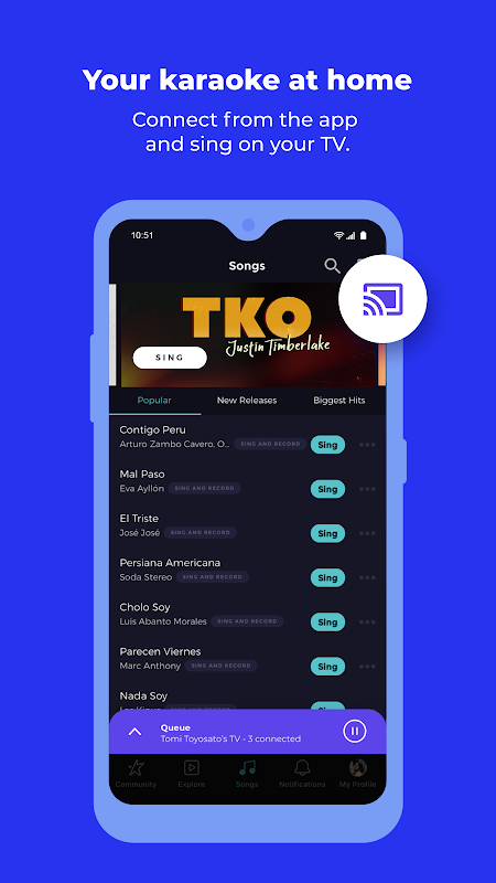 Have fun singing, share your recording, get followers and stand out in our community in Latin America.