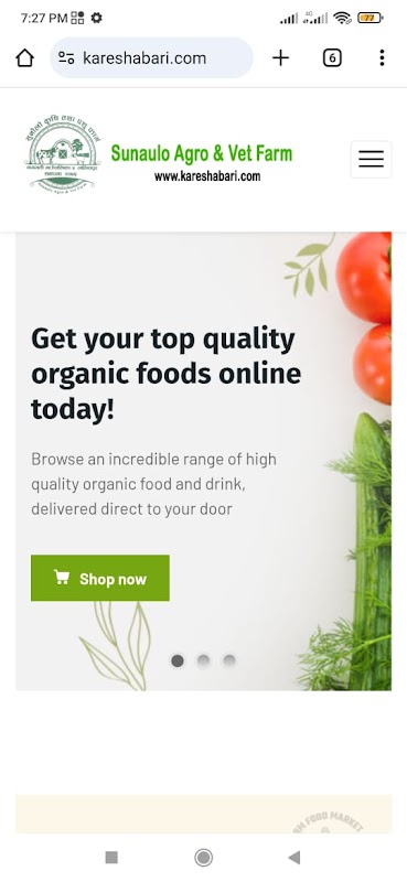 در Kareshbari از Sunaulo Agro & Vet Farm، ما معتقدیم که تغذیه سالم باید برای همه ساده، راحت و در دسترس باشد. هدف ما صرفه جویی در وقت و تلاش شما با ارائه راهی بدون زحمت برای انتخاب سبزیجات تازه است که از سبک زندگی سالم شما حمایت می کند. لذت خوب بودن مزرعه را با ما کشف کنید و زندگی مغذی را بخشی از زندگی روزمره خود کنید!