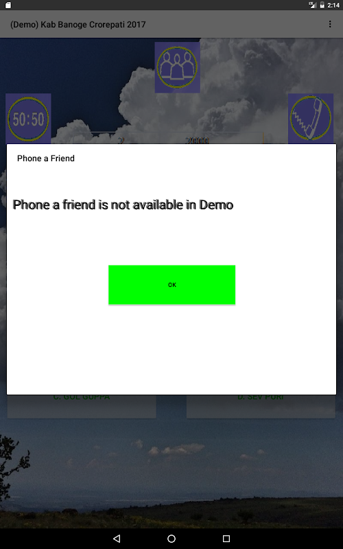 Lifeline 3 - Phone-a Friend Will display the result of Phone a friend to the user. (Disabled in Demo)