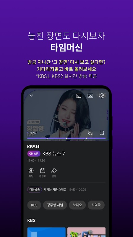 - پخش زنده (KBS1، KBS2) و برنامه اصلی "زیرنویس" ارائه شده است