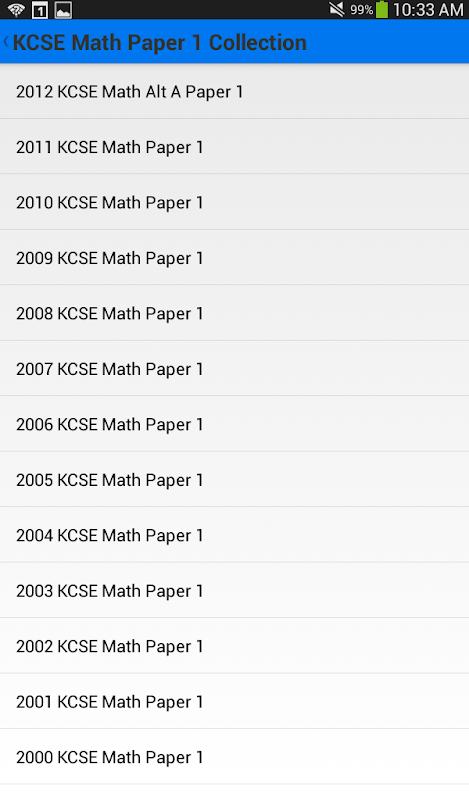 "سوالات KCSE MATH" نرم افزار مجموعه ای از سوالات ریاضی پایه از امتحانات KCSE from 2012-1995 است. این برنامه فراهم می کند دسترسی به آزمون ملی ریاضی به تمام دانش آموزان در دستگاه های خود، تلفن همراه (قرص، گوشی های هوشمند). دانش آموزان هم اکنون می توانید این برنامه را به عمل برای حل کنیا (KCSE) آزمون مربوط مشکلاتی که به احتمال زیاد به در امتحانات KCSE مواجه می شود استفاده کنید.