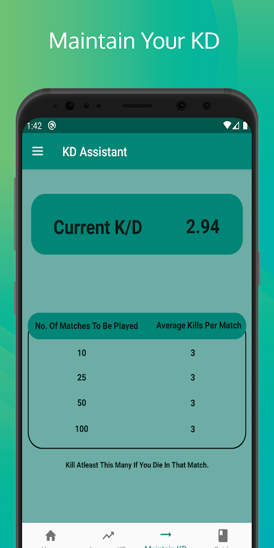 MAINTAIN KD SECTION- Here the app will calculate the number of enemies to defeat per match to maintain your current KD.