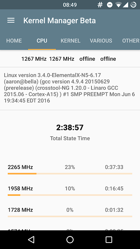 • CPU: maximum/minimum frequency, maximum/minimum screen off;