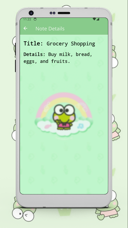 یادداشت برداری نمی تواند ساده تر باشد. فقط برنامه را باز کنید، برای ایجاد یادداشت جدید ضربه بزنید و شروع به نوشتن کنید، همه اینها با Keroppi در کنار شما.
