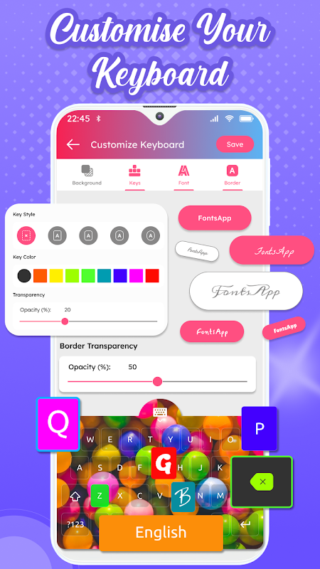 سبک و طراحی صفحه کلید با تم های سفارشی. فونت های زیادی برای کیبورد وجود دارد