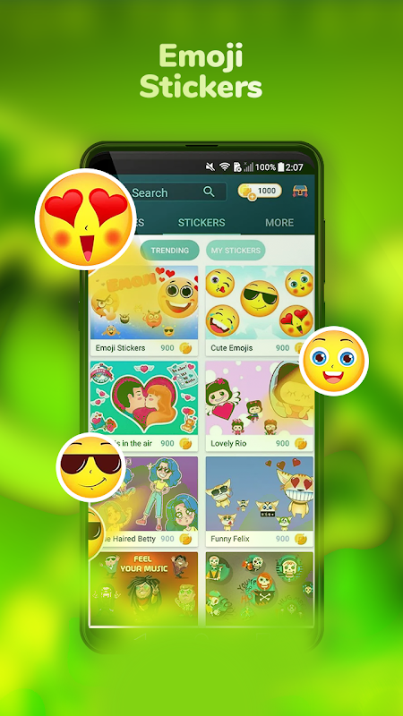 - 3000+ emoticons and emojis, popular GIFs, stickers and colorful themes