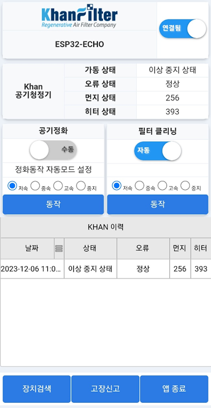 KhanFilter에서 생산하는 가정용 공기청정기 제어 앱으로