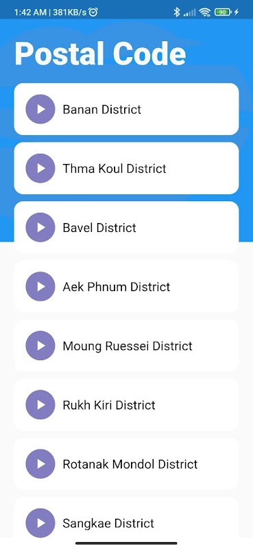 نمایش شما کد پستی برای تمام استانها در کامبوج.