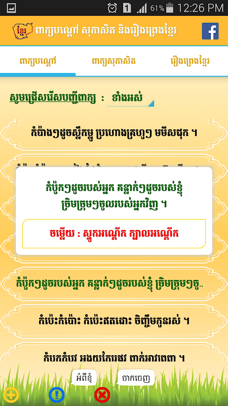 APKPure از تأیید امضای نرمافزار برای اطمینان از دانلودهای بدون ویروس APK Khmer Proverb استفاده میکند.