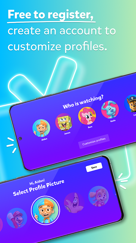 - نمایه خود را ایجاد کنید، قابل تنظیم با آواتار، انتخاب عنوان و گروه سنی، و تنظیم کنترلهای والدین (با حساب رایگان)