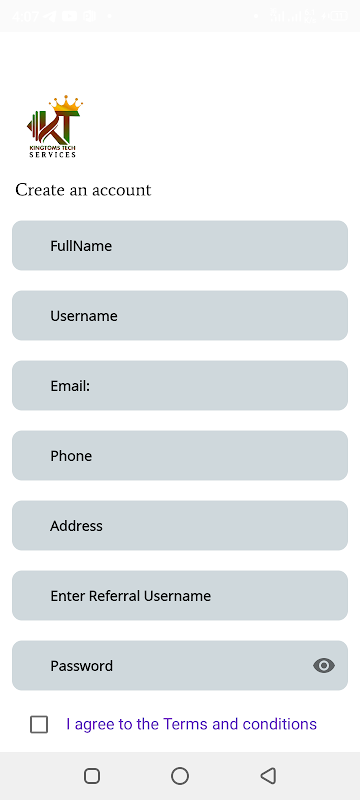 KINGTOMSTECH یک شرکت مخابراتی ثبت شده است که خدمات انتقال صدا یا داده مانند داده تلفن همراه، زیر کابل، قبض برق، زمان پخش (VTU) را ارائه می دهد.