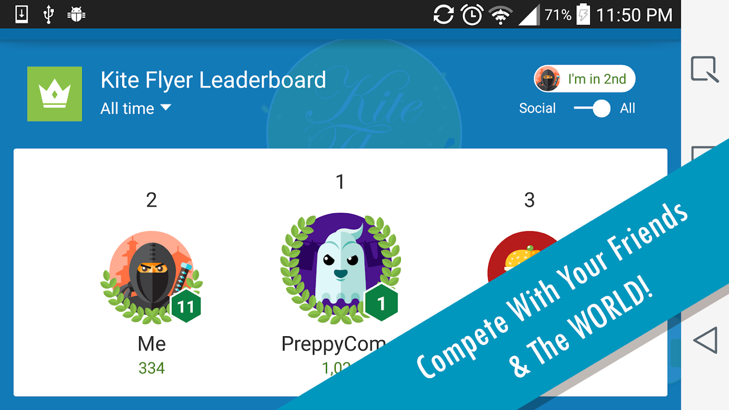 * The game got more challenging! (The kite gets faster every second)