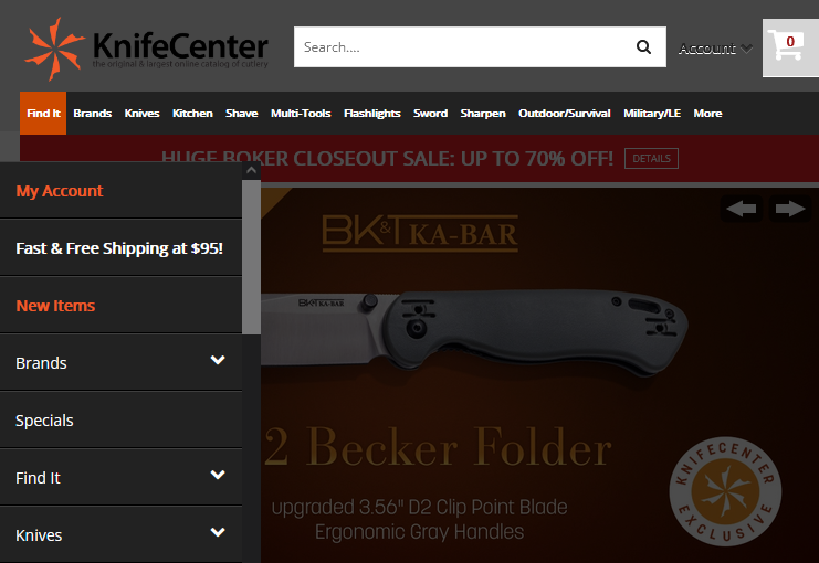The KnifeCenter has an incredibly wide range of items. The focus is on variety and quality. You can view and compare thousands of items from the finest manufacturers. Our goal is to have every type of cutlery product available anywhere - from Pizza Tools to combat knives - and, to this end, we are constantly adding new products and indexing them. When you want to buy an item, you can see what is really available on the world market and not only what your local retailer decides to carry.