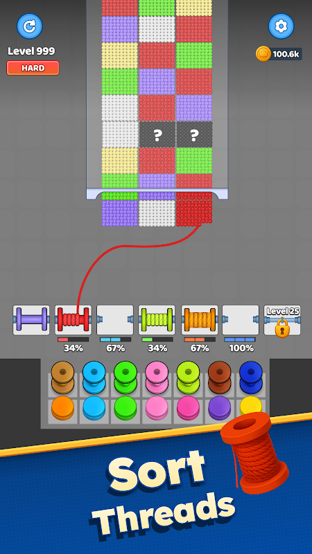 قرقره ها را برای رنگ Thread ضربه بزنید و تراز کنید — هر مسابقه پارچه شما را زنده می کند!