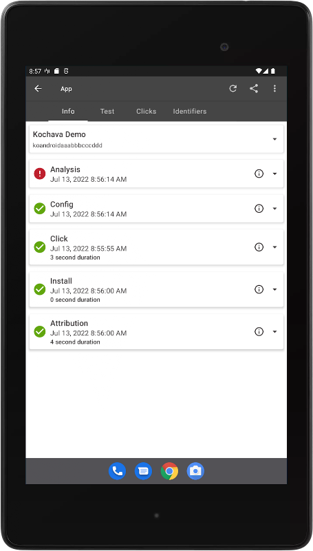 5. ادغام برنامه خود را با Kochava با جزئیات نصب از دستگاه خود تأیید کنید.