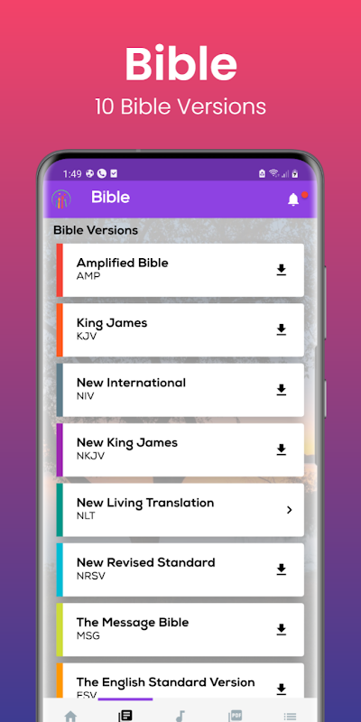 یکی از بهترین راهها برای قوی ماندن در ایمان این است که خود را به طور مداوم در کلام خدا اشباع کنید. این برنامه دارای 10 نسخه مختلف کتاب مقدس و یک کتاب مقدس صوتی با صدای مردانه و زنانه است.