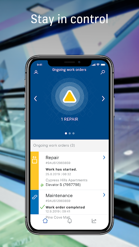 برنامه KONE Mobile به شما کمک می کند تا با استفاده از تلفن هوشمند خود 24/7 در بالای موارد باقی بمانید. وضعیت همه تجهیزاتی را که KONE برای شما حفظ کرده است ، از جمله تجهیزات متصل 24/7 ، و همچنین کارهای تعمیر و نگهداری در حال انجام ، گذشته و آینده را دنبال کنید.