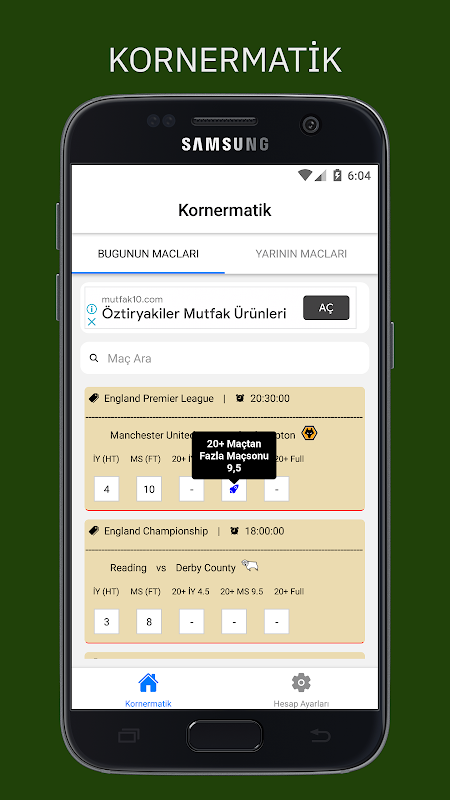 Kornermatik یک برنامه پیش بینی شرط بندی نیست. الگوریتمی است که صدها داده را در زمان کوتاهی تجزیه و تحلیل کرده و به ساده ترین شکل به رابط کاربری ارائه می کند. در مسابقات موجود در بولتن میانگین کرنر 40 بازی آخر هر دو تیم را محاسبه می کند و آمار نیمه اول و پایان بازی را محاسبه می کند.