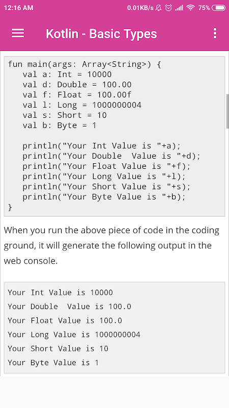 This FREE app will help you to understand KOTLIN Programming Language properly and teach you about how to Start Coding using KOTLIN. Here we are covering almost all Classes, Functions,