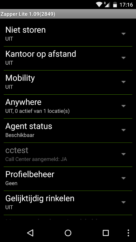 * De functionaliteit van de Zapper Lite is beperkt tot het instellingen menu. Wanneer een toetsenbord, contactenlijst, interne telefoonlijst en gesprekkenlijst gewenst is installeert u dan de volledige versie van de Zapper.