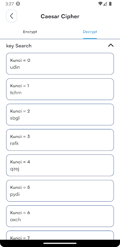 این اپلیکیشن دارای دو نوع رمز به نام های Caesar Cipher و Random Substitution Cipher می باشد.