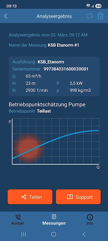 نتیجه بلافاصله بر روی صفحه نمایش، به عنوان مثال نشان داده شده است که پمپ و موتور هر بار با مشتقات جزئی اداره می شود. شما می توانید به طور مستقیم به دنبال مشاوره برای تجزیه و تحلیل فردی شما، شخص تماس KSB به صورت محلی صالح یکپارچه می تواند تجزیه و تحلیل خود را ادامه خواهد داد.
