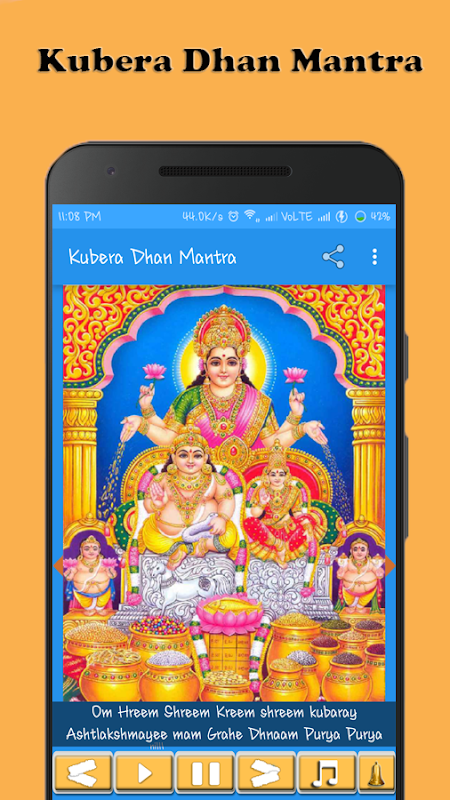 "Lord Kuber Mantra Chant" App is available with super sound audio. This Laxmi Kuber Dhan Mantra is in Hindi and totally Free!!