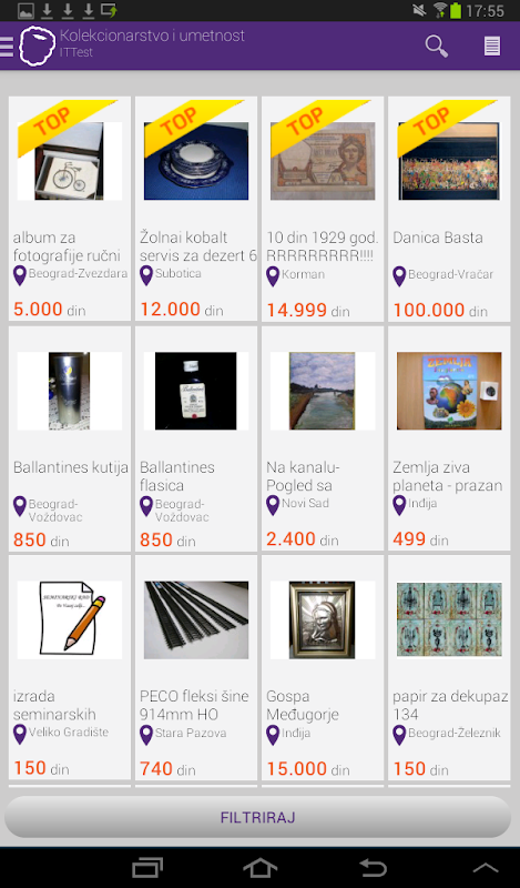 Aplikacija ne podržava registraciju niti prodaju predmeta.
