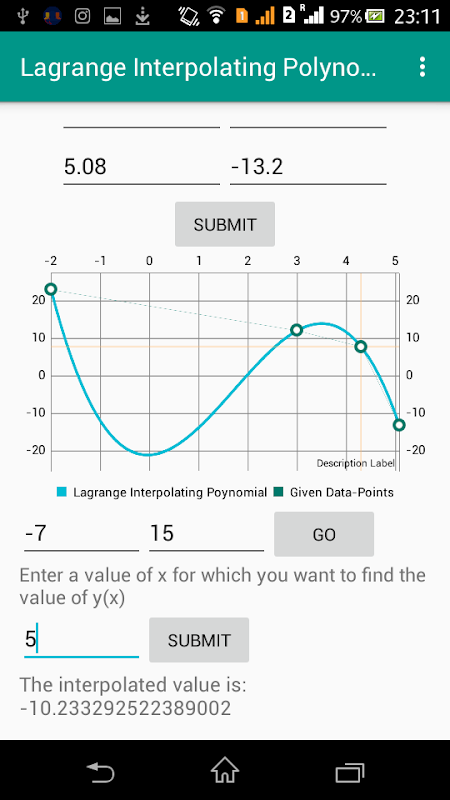 A simple Lagrange Interpolation tool that interpolates the value of f(x) for an unknown x using the given values of f(x) for known x.