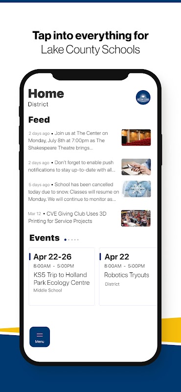 برنامه رسمی اندروید برای مدارس Lake County، FL.