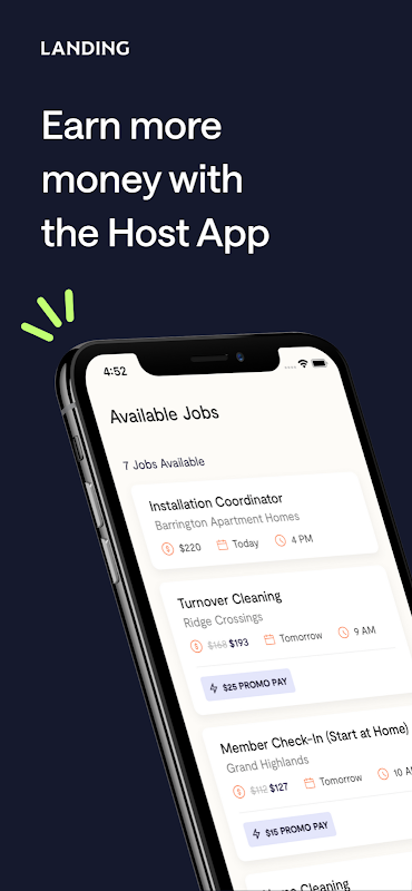 برنامه رسمی Landing Host به میزبان ها اجازه می دهد تا شغل خود را درخواست کنند و حساب خود را مشاهده کنند.