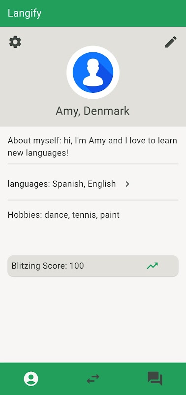 چت های آسان و سریع: در چت های کوتاه و تصادفی شرکت کنید که متناسب با برنامه شلوغ شما باشد. چه چند دقیقه یا بیشتر وقت داشته باشید، Langiy یادگیری زبان را راحت و در دسترس می کند.