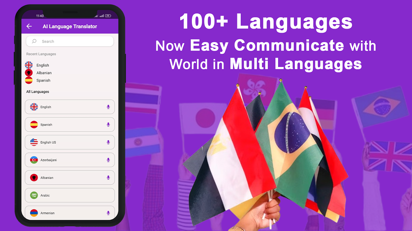 با استفاده از Language Translator AI، پیشرفتهترین و کاربرپسندترین برنامه ترجمه، موانع زبان را بشکنید و بدون زحمت با دنیا ارتباط برقرار کنید. این برنامه با استفاده از فناوری هوش مصنوعی طراحی شده است تا ارتباطات جهانی را یکپارچه کند، چه در حال سفر، یادگیری زبان جدید یا کار با اسناد بین المللی باشید. با پشتیبانی از بیش از 80 زبان، Language Translator AI ابزاری است که برای ترجمههای فوری و دقیق در هر زمان و هر مکان استفاده میکنید.