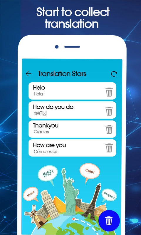 Language Translator: Translate by Voice & Camera a text to speech translator is an instant translator app that can let you translate text from any language to any language instantly by voice or by camera. The two inputs Voice & Camera make this app unique and instant translate app by which you can do speech translation or screen translate. Download Language Translator: Translate by Voice & Camera and start Speak and Translate now! If you need to translate English to Spanish or translate Spanish to English just use our translation app. If you are in any country where you can't speak you native language then download Language Translator: Translate by Voice & Camera right now to make life easier. Moreover, if you can read up but can not translate, just use the camera translator. Scan the image, tap on the word or sentence that you want to translate and press the Translation button. Voice Translation feature of this app helps you in instant translations where you can not type like driving or talking to someone & camera translator feature of the app lets you translate the text from a picture with which you can do translation photo.