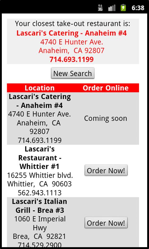 The Lascari's App allows you to browse and order from participating Lascari's restaurants.