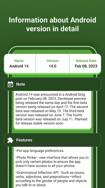 با این برنامه، به دست آوردن بینش و دانش قدیمی و آخرین نسخه آندروید. دریافت اطلاعات کامل بر روی نسخه های آندروید: