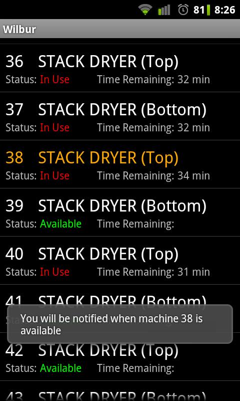 See what machines are available and how long you have to wait for your laundry to be finished! Receive notifications when your laundry is done!