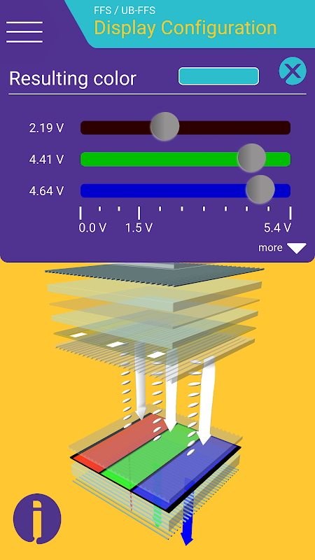 گشت و گذار از طریق لایه های مختلف و فن آوری و توقف که در آن شما می خواهم برای کسب اطلاعات بیشتر. متون پاک اطلاعات در مورد ساختار، مشخصات پیکسل، توابع، و خیلی بیشتر. با تابع سوئیچینگ شما در کنترل هستند: تعریف ولتاژ و تجربه های مختلف چگونه آنها ساختار لایه کریستال مایع و اثر رنگ تاثیر می گذارد.