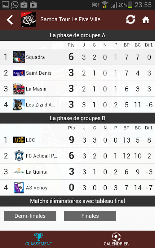 La possibilité de suivre les live des tournois organisés au FIVE FC.