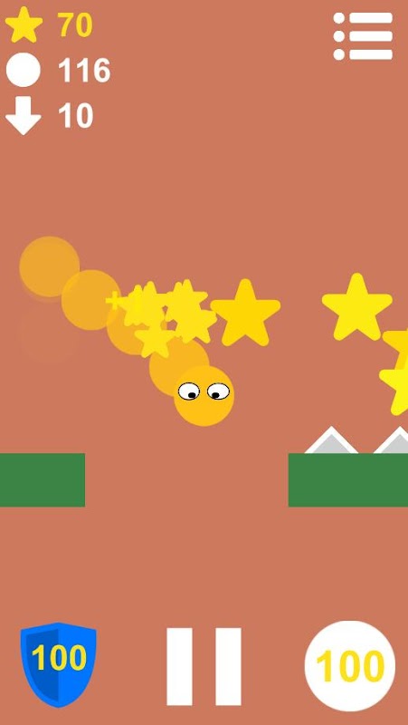 На локации генерируются случайным образом звёздочки, которые по своей сути выступают как местная валюта, но не спешите их тратить во время игры. Под конец игры они будет отправлены в таблицу лидеров, и кто знает, может быть именно вы займёте лидирующую позицию в списке лидеров! Так же, как только вы проиграете, они преобразуются и зачислятся на счёт для покупок внешнего вида, но об этом дальше. Во время игры, вы можете потратить их на барьер или увеличения количества прыжков! Причём стоит заметить, что с каждой покупкой, они станут дороже.