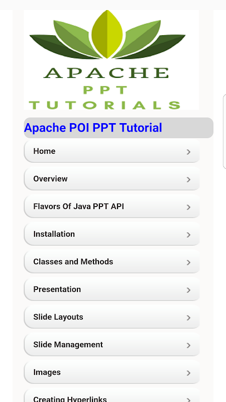 -> Learn Apache POI PPT Tutorial App come with complete comprehensive and responsive layout.