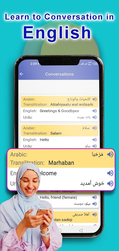 این برنامه بر روی عبارات و مکالمات متمرکز است. بنابراین ، با استفاده از عبارات و مکالمات ، فرایند یادگیری زبان عربی در مدت زمان بسیار کوتاهی انجام می شود. این برنامه یادگیری زبان عربی بسیاری از دروس را برای یادگیری زبان عربی یا عربی گوی مورد نیاز است. قرآن کریم ما نیز به زبان عربی است ، بنابراین ، این برنامه همچنین به شما کمک می کند آنچه را در قرآن کریم نوشته شده را بهتر درک کنید. این برنامه عربی یادگیری متشکل از دروس مختلف به صورت روزانه است که در طی چند روز یادگیری یا صحبت به زبان عربی بسیار آسان است. این برنامه یادگیری عربی متشکل از هزاران کلمه و عبارت است و با استفاده از عبارات یادگیری عربی بسیار آسان است. این برنامه یک دوره کامل عربی زبان برای همه شما است.