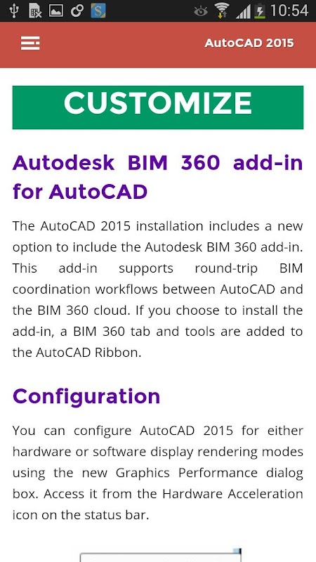 + You can configure AutoCAD 2015 for either hardware or software display rendering modes using the new Graphics Performance dialog box. Access it from the Hardware Acceleration icon on the status bar.