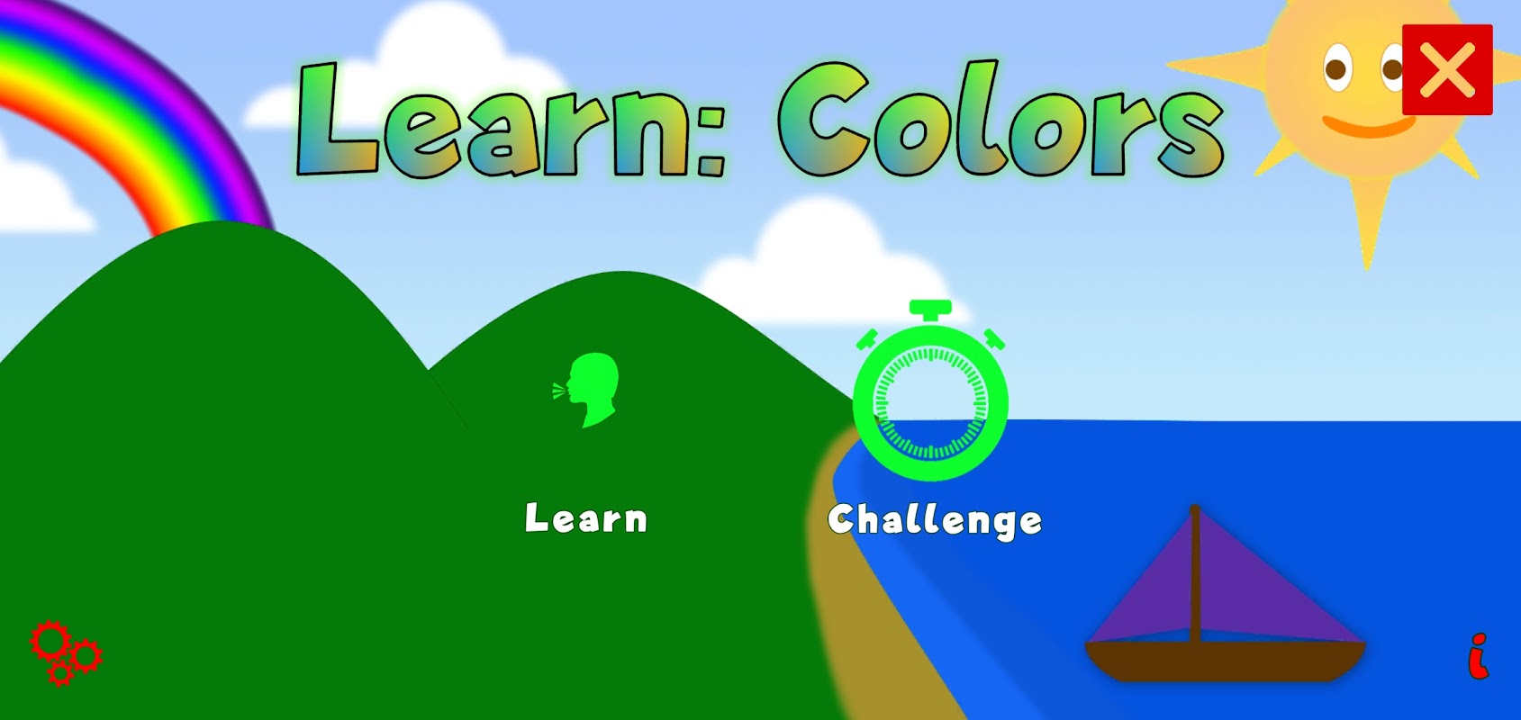 با Learn: Colors کودک شما می تواند رنگ های اصلی را یاد بگیرد.
