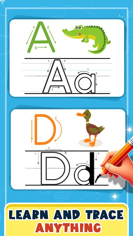 این برنامه ردیابی نامه، یادگیری شکسته را سرگرم کننده، آسان و ارزشمند می کند! این را به همراه خود برای بهبود مهارت های دست خط تبدیل کنید.