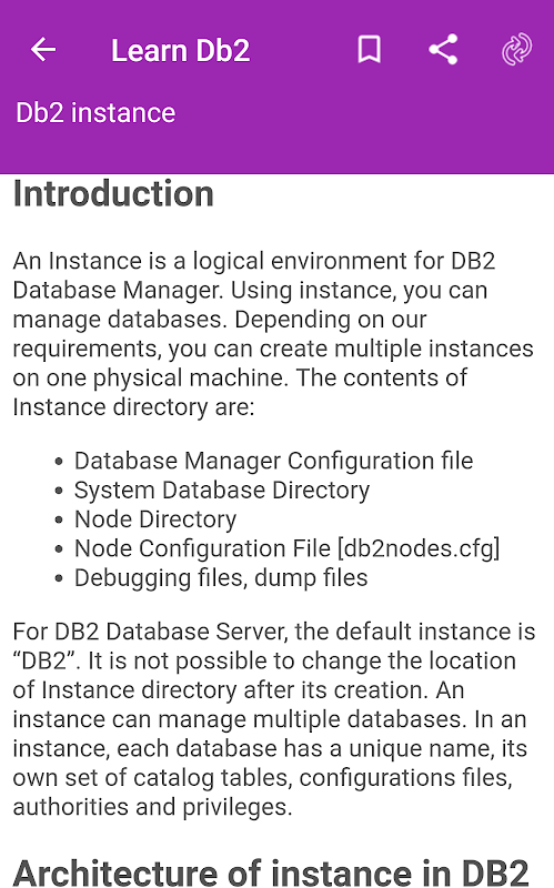 به راحتی می توانید با استفاده از این برنامه DB2 را یاد بگیرید. اگر به DB2 علاقه دارید یاد می گیرید عمومی DB2 بسیار آسان است. این برنامه دارای یادداشت های اساسی DB2 و آموزش است.