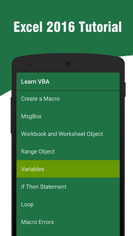 This app will guide you through the new features of MS Excel 2016 to help you easily learn Ms Excel and Practice any time.