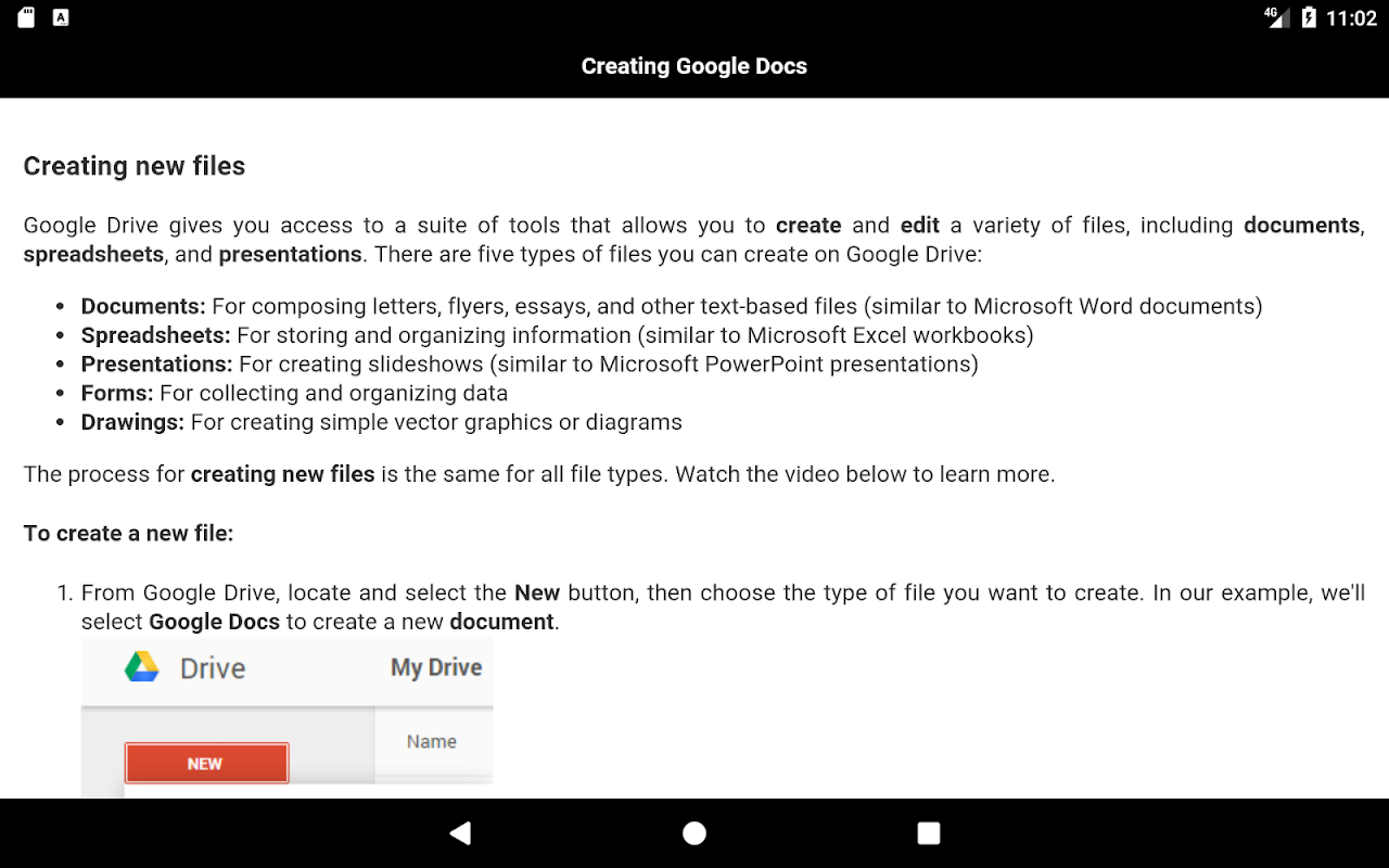 Using Drive isn’t tricky at all. In fact, it’s probably one of the easiest cloud services to start using. So rather than giving you a needlessly long guideline, this app offers a brief introduction to navigating and using the Drive interface, and also includes a few tips to help you get the most out of the service.