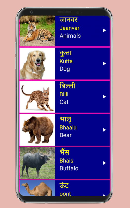 2. هر کلمه هندی دارای یک تصویر واضح 📸🖼️ و تلفظ صوتی 🎵🔊 برای آسان کردن یادگیری هندی از طریق انگلیسی است.