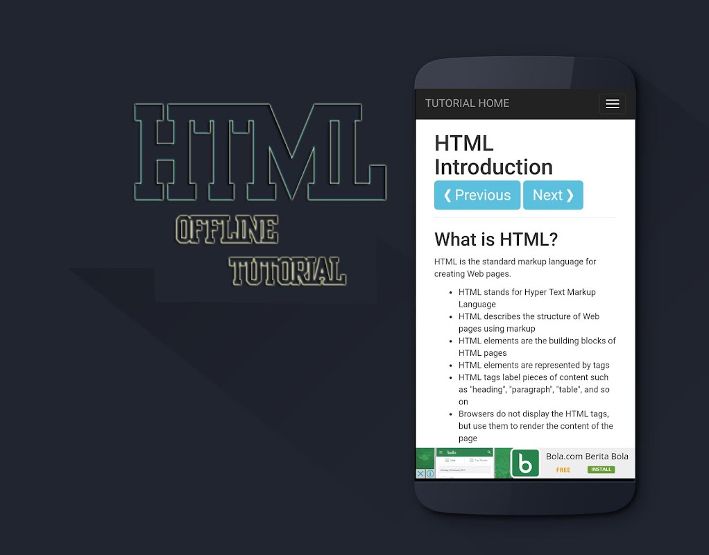 HTML Tutorial App Off line IE Complete Off line Tips Via HTML. You can learn the fundamentals Of Basic HTML So To HTML in the continuation level Step By Step